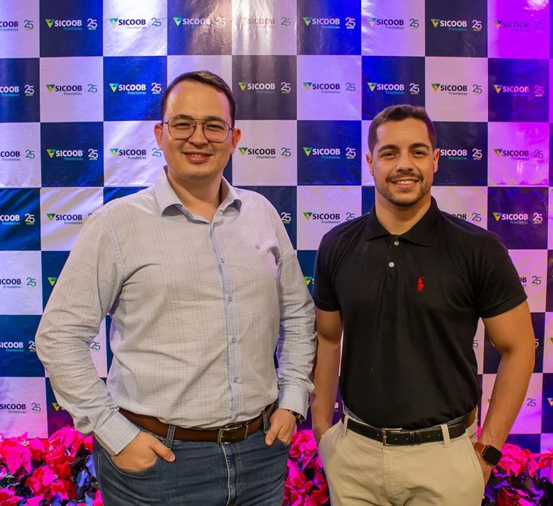 O SICOOB FRONTEIRAS soma mais de 24 mil cooperados onde tem agências nos estados de Rondônia, Mato Grosso e Mato Grosso do Sul. A cooperativa financeira que surgiu em Cacoal, no ano de 1999, por iniciativa de 59 empreendedores locais, completou 25 ANOS de atividade. Na foto o diretor administrativo TIAGO ZANDONÁ e HEITOR GOMES coordenador de Comunicação, Marketing e Investimento Social.