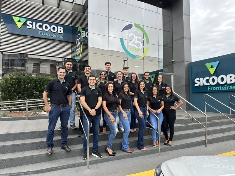 Registrei parte da dinâmica e atenciosa equipe da agência SICOOB FRONTEIRAS em Cacoal/RO. A cooperativa financeira que surgiu em Cacoal, no ano de 1999, por iniciativa de 59 empreendedores locais, tem 25 ANOS de atividade. O SICOOB FRONTEIRAS soma mais de 24 mil cooperados, onde tem agências nos estados de Rondônia, Mato Grosso e Mato Grosso do Sul.