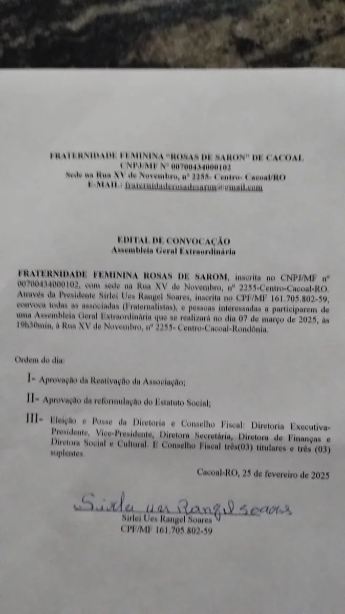 Edital de Convocação Fraternidade Feminina Rosas de Sarom